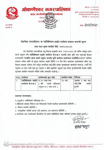 गोकर्णेश्वर नगरपालिका वडा नं २ मा गाईभैसीपालन प्रवर्द्धन कार्यक्रम संचालन सम्बन्धी सूचना ।
