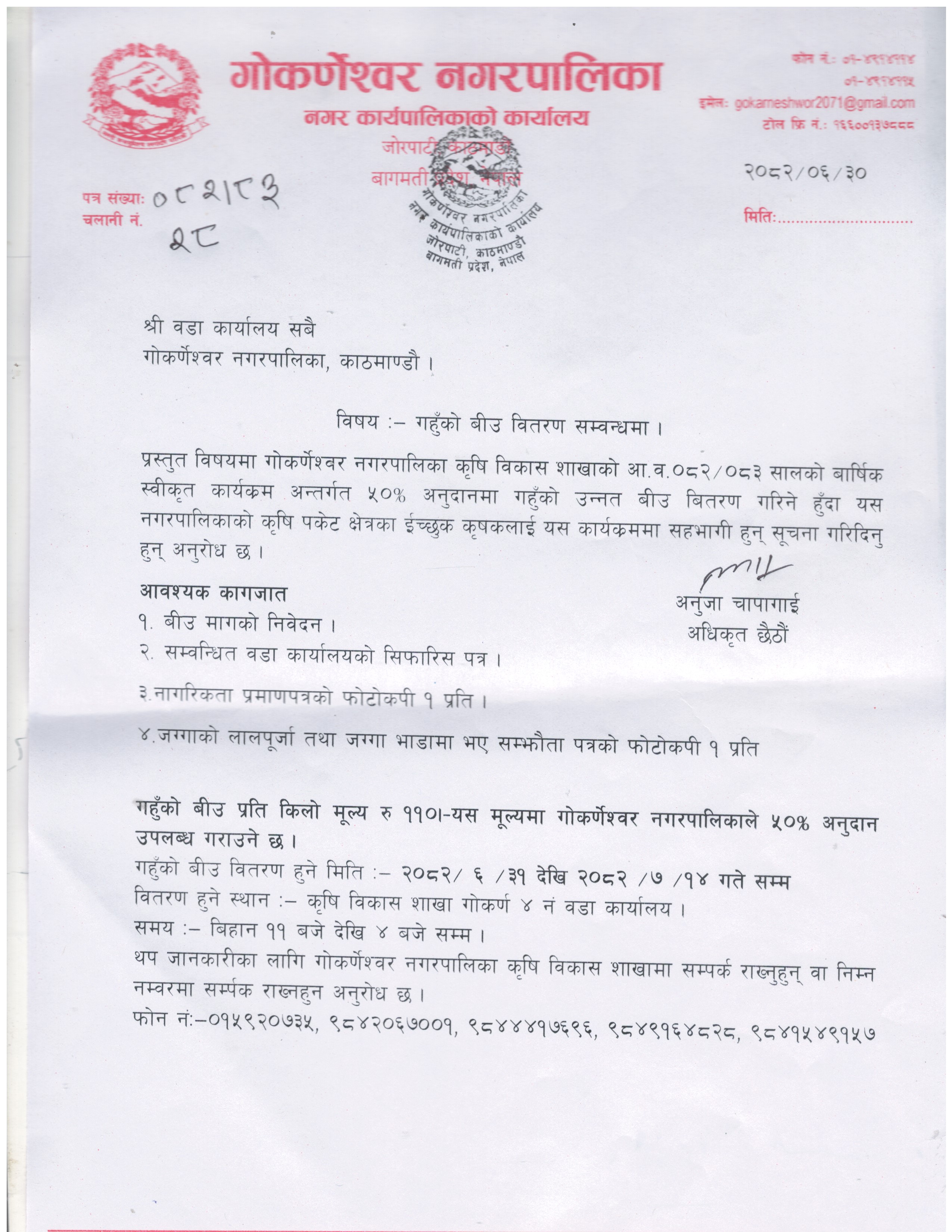 गहुँको बीउ वितरण सम्बन्धी सूचना ।