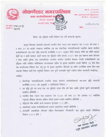 तह वृद्धिको लागि निवेदन पेश गर्ने सम्बन्धी सूचना ।